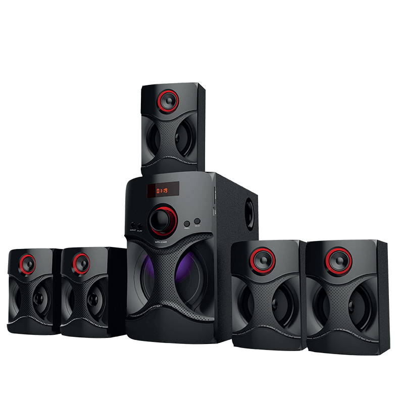 Regarding music, the main goal of 5.1 surround sound is a proper localization and equability of all acoustic sources for a centered positioned audience. Therefore, ideally five matched speakers should be used.